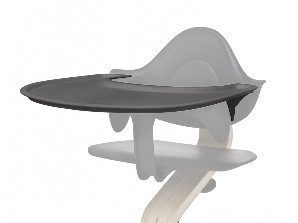 Pultík Tray sa ľahko namontuje na stoličku Nomi nasunutím na zábranu Mini. Max. zaťaženie na pultíku je 5 kg a môže sa umývať v umývačke riadu až do 40°