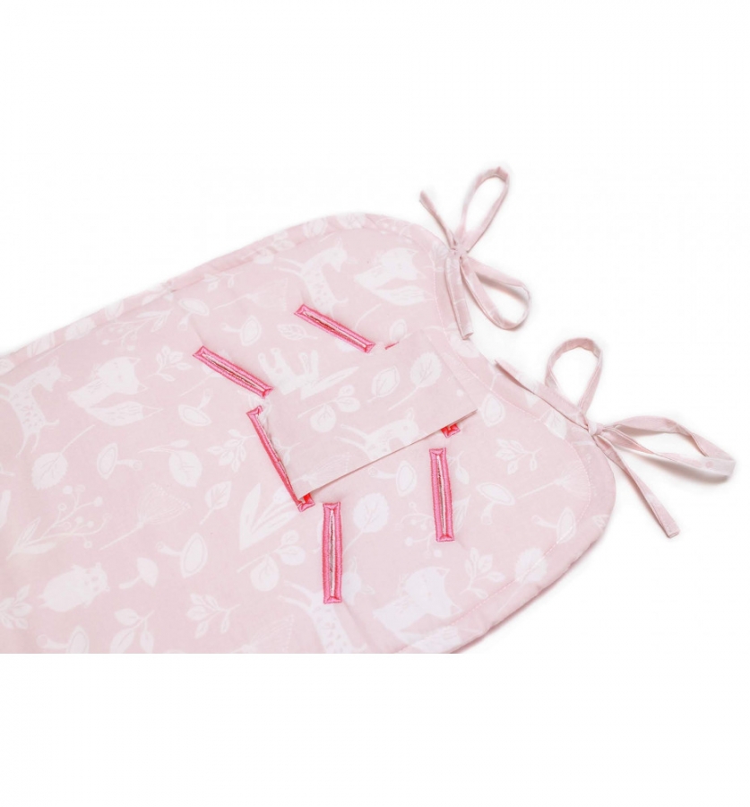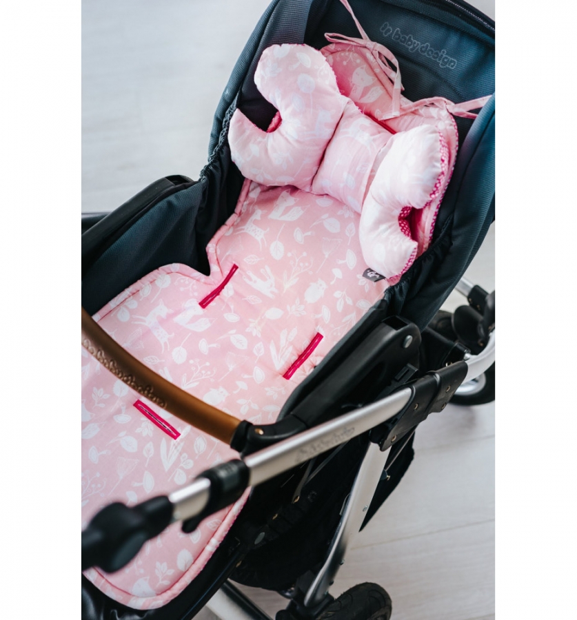Univerzálne polstrovanie do kočíka PULP. Polstrovanie je obojstranné - z každej strany iný vzor. Vyšité otvory na rôzne výšky bezpečnostných pásov. Na kočík sa uchytáva pomocom bezpečnostných pásov kočíka, šnúrkami na vrchnom okraji polstrovania, alebo gumičkou na zadnej strane polstrovania. Vhodné pre väčšinu športových kočíkov. Na polstrovanie je možné uchytiť vankúšik proti otrasom (voliteľné príslušenstvo) pomocou odnímateľného pruhu na suchý zips.
