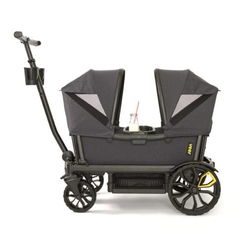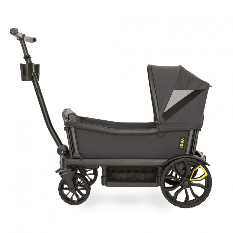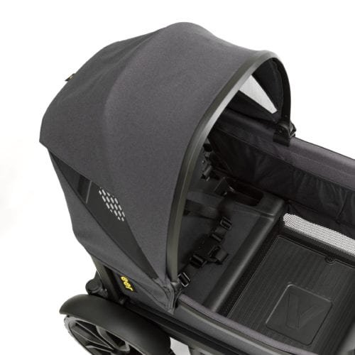 Sklápacia strieška sa jednoducho a intuitívne uchytí o rám vozíka Veer a ľahko sa polohuje hore/dole. Na vozík Veer môžete pripevniť jednu alebo dve striešky nad ktorýmkoľvek sedadlom.