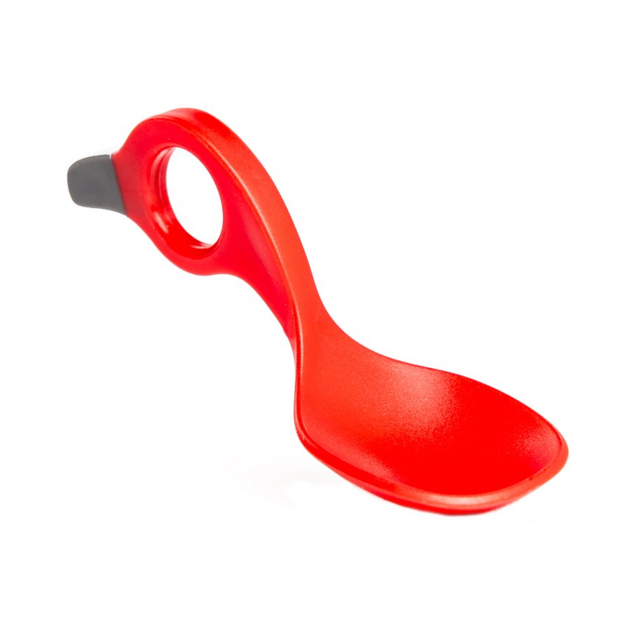 Otvor v lyžičke umožní kontakt medzi palcom a ukazovákom pre zvýšenie stability uchopenia a ak to dieťaťu bude viac vyhovovať, môže prevliecť palec alebo ukazovák cez otvor pre bezpečnejšie uchopenie.