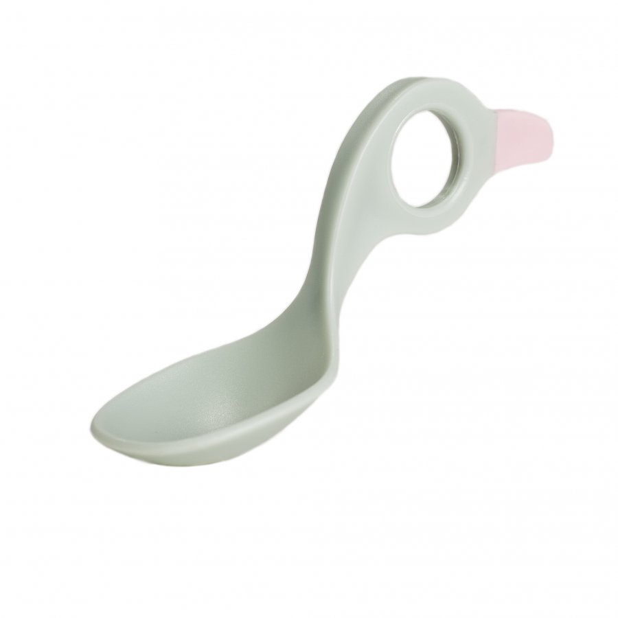 Otvor v lyžičke umožní kontakt medzi palcom a ukazovákom pre zvýšenie stability uchopenia a ak to dieťaťu bude viac vyhovovať, môže prevliecť palec alebo ukazovák cez otvor pre bezpečnejšie uchopenie.