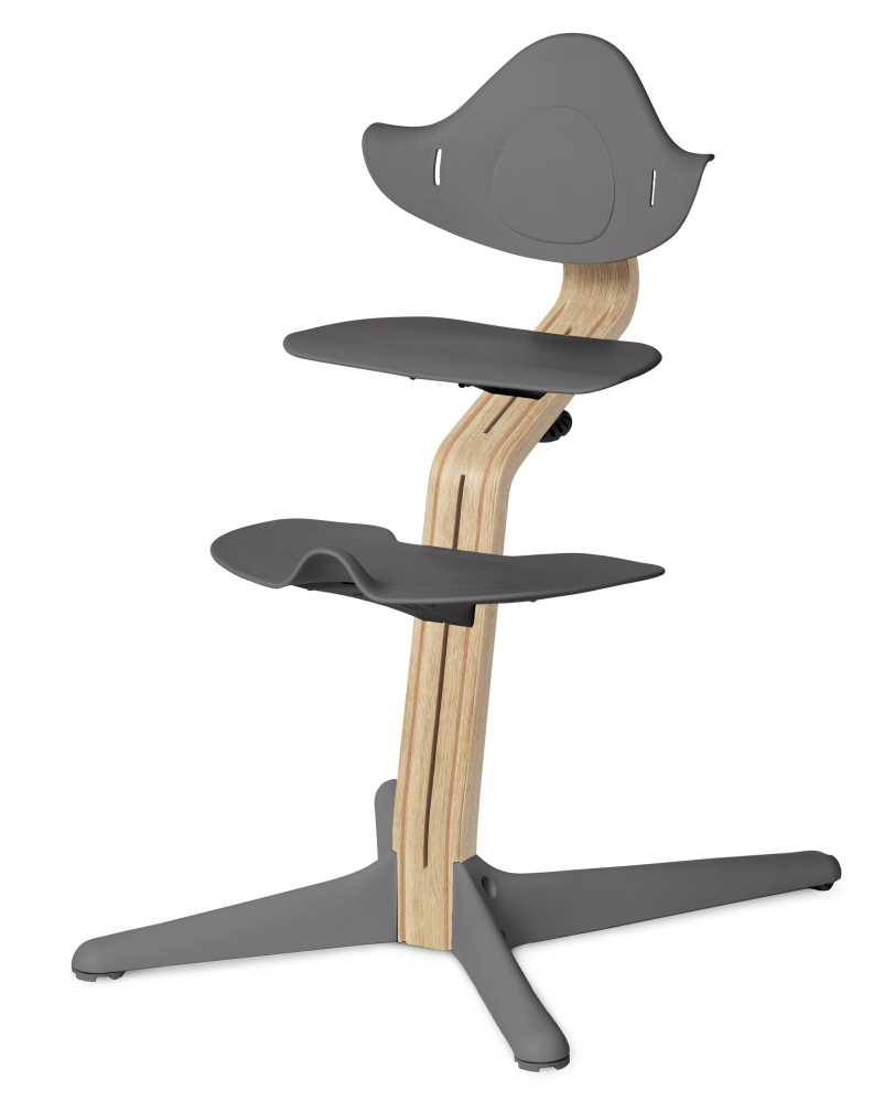 Drevená noha poskytuje pevnosť, odolnosť a flexibilitu rastúcej stoličke NOMI. Unikátny tvar zabezpečuje, že výška a hĺbka sedenia sú vždy dokonale prispôsobené.