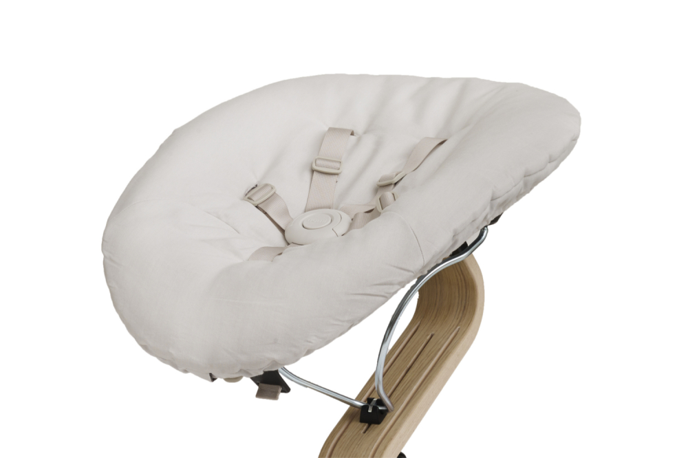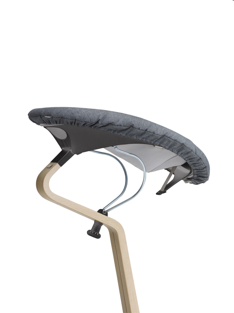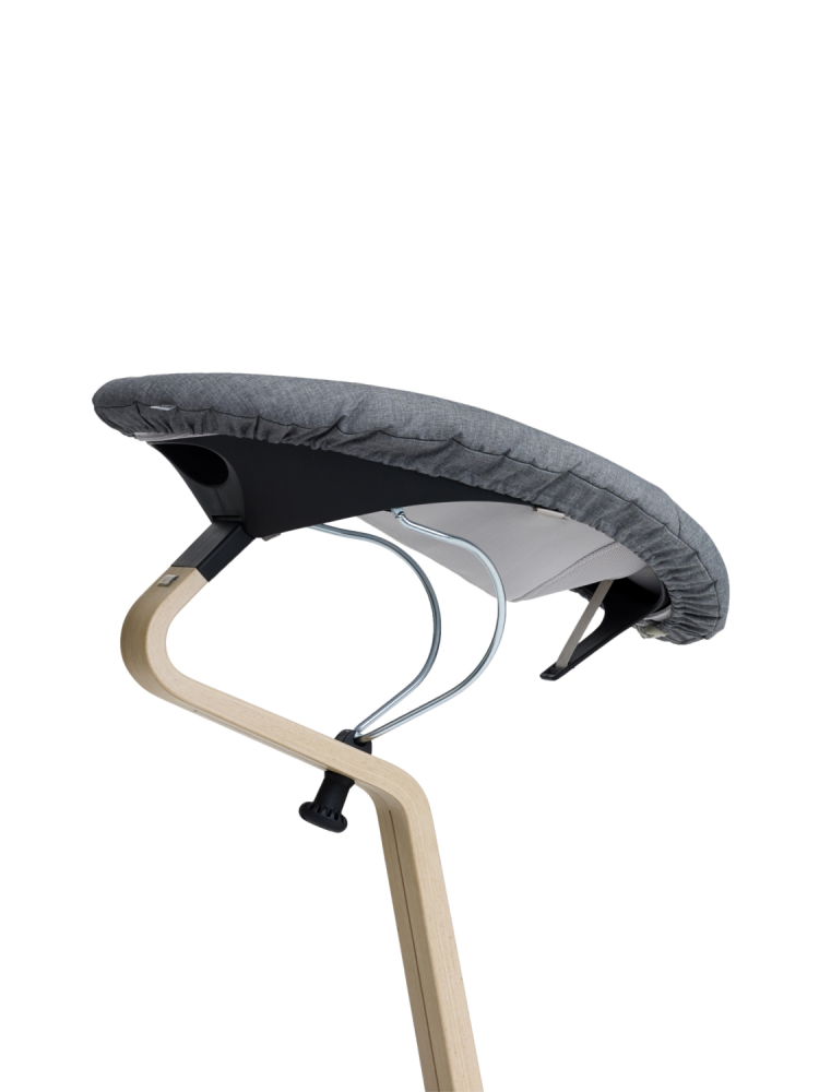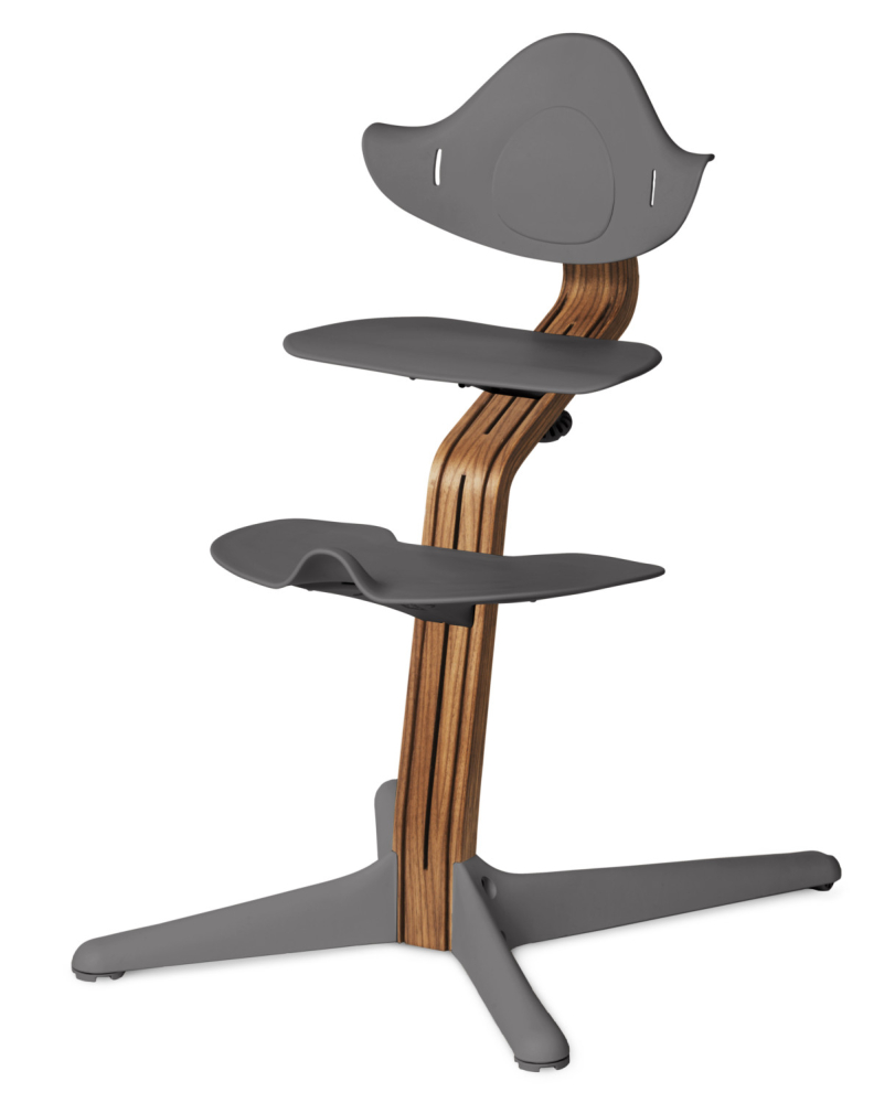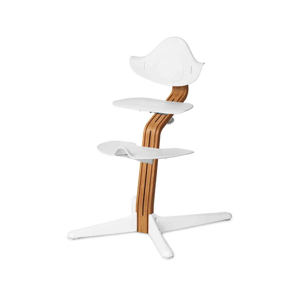 Drevená noha poskytuje pevnosť, odolnosť a flexibilitu rastúcej stoličke NOMI. Unikátny tvar zabezpečuje, že výška a hĺbka sedenia sú vždy dokonale prispôsobené.