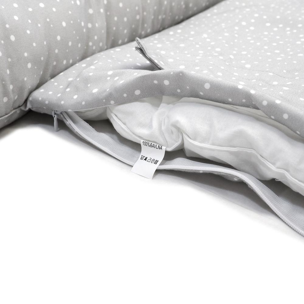 Hniezdo je možné používať obojstranne. Má praktickú šnúrku po obvode, ktorou je možné si jeho veľkosť upraviť podľa potreby. Aby sme docielili ešte väčšiu bezpečnosť, zaväzovanie je prekryté pásom na suchý zips, ktorý zároveň pomáha ešte lepšie držať tvar hniezda. Jeho ložná plocha je odzipsovateľnávnútorná výplň je vyberateľná, čo je z praktického hľadiska veľká výhoda. Umožňuje tým totiž oveľa ľahšiu manipuláciu pri jeho údržbe. Obvodový pás je vyplnený certifikovaným guľôčkovým dutým vláknom a vyberateľná výplň ložnej plochy je vyrobená zo 100% bavlny a dutého vlákna hrúbky 2cm.