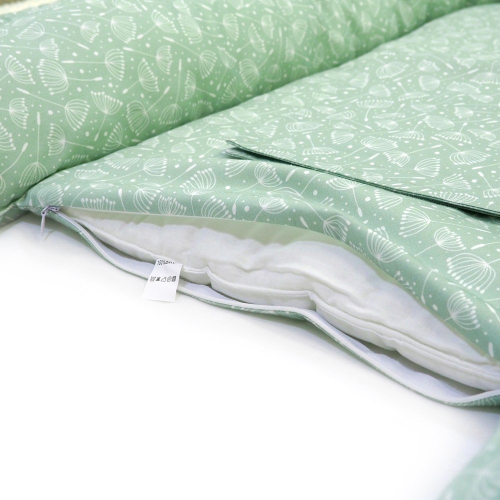 Hniezdo je možné používať obojstranne. Má praktickú šnúrku po obvode, ktorou je možné si jeho veľkosť upraviť podľa potreby. Aby sme docielili ešte väčšiu bezpečnosť, zaväzovanie je prekryté pásom na suchý zips, ktorý zároveň pomáha ešte lepšie držať tvar hniezda. Jeho ložná plocha je odzipsovateľnávnútorná výplň je vyberateľná, čo je z praktického hľadiska veľká výhoda. Umožňuje tým totiž oveľa ľahšiu manipuláciu pri jeho údržbe. Obvodový pás je vyplnený certifikovaným guľôčkovým dutým vláknom a vyberateľná výplň ložnej plochy je vyrobená zo 100% bavlny a dutého vlákna hrúbky 2cm.