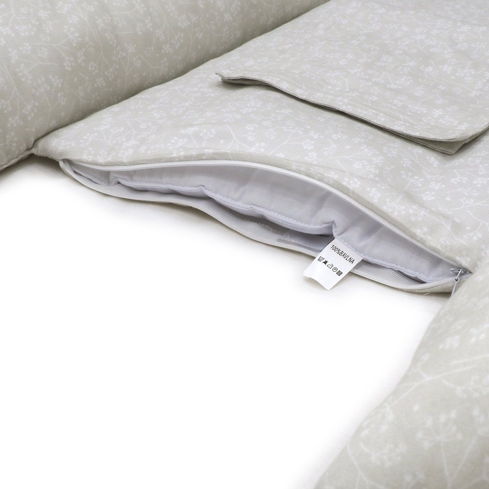 Hniezdo je možné používať obojstranne. Má praktickú šnúrku po obvode, ktorou je možné si jeho veľkosť upraviť podľa potreby. Aby sme docielili ešte väčšiu bezpečnosť, zaväzovanie je prekryté pásom na suchý zips, ktorý zároveň pomáha ešte lepšie držať tvar hniezda. Jeho ložná plocha je odzipsovateľnávnútorná výplň je vyberateľná, čo je z praktického hľadiska veľká výhoda. Umožňuje tým totiž oveľa ľahšiu manipuláciu pri jeho údržbe. Obvodový pás je vyplnený certifikovaným guľôčkovým dutým vláknom a vyberateľná výplň ložnej plochy je vyrobená zo 100% bavlny a dutého vlákna hrúbky 2cm.