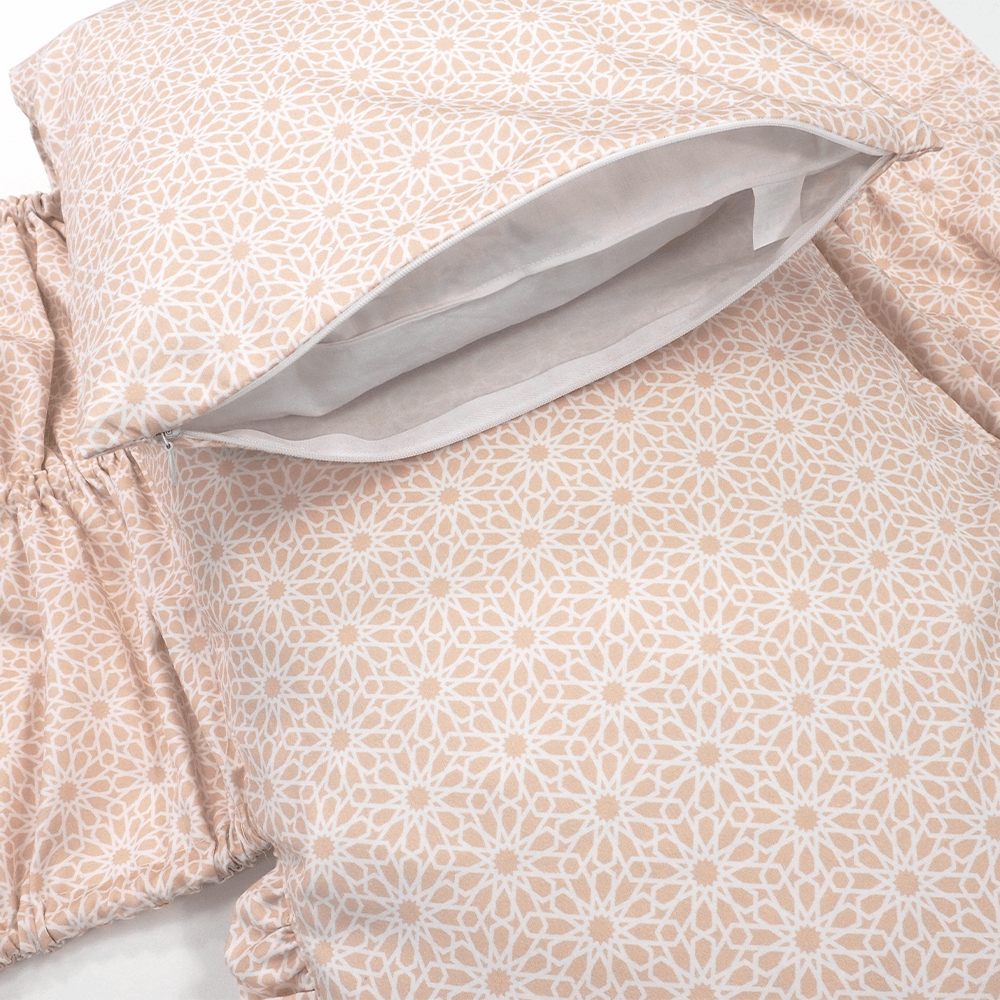 Perinka SOFTELLO je vyrobená z kvalitného bavlneného saténu s našim vlastným originálnym dizajnom. Tento materiál je na dotyk v porovnaní s klasickou bavlnou oveľa príjemnejší a hebkejší, a preto zaručí vášmu bábätku príjemné teplo. Má tvar obdĺžnika, a zaoblenú stranu zdobí malý volánik. Zaväzuje sa tromi šnúrkami, pevne všitými v bočných dieloch, takže nemusíte mať obavu, že by sa vám šnúrka mohla vyvliecť. Vnútornú výplň je možné vybrať, čím značne zjednodušuje jej údržbu a predlžuje jej životnosť.