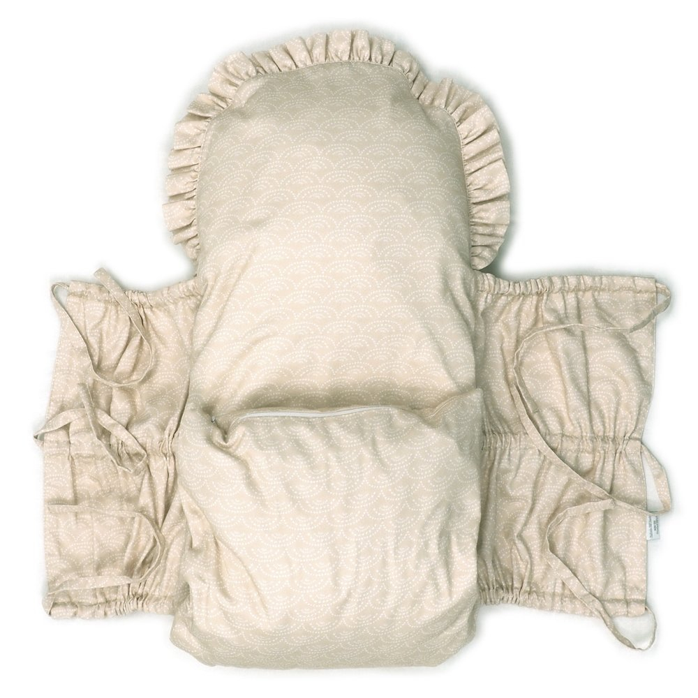 Perinka SOFTELLO je vyrobená z kvalitného bavlneného saténu s našim vlastným originálnym dizajnom. Tento materiál je na dotyk v porovnaní s klasickou bavlnou oveľa príjemnejší a hebkejší, a preto zaručí vášmu bábätku príjemné teplo. Má tvar obdĺžnika, a zaoblenú stranu zdobí malý volánik. Zaväzuje sa tromi šnúrkami, pevne všitými v bočných dieloch, takže nemusíte mať obavu, že by sa vám šnúrka mohla vyvliecť. Vnútornú výplň je možné vybrať, čím značne zjednodušuje jej údržbu a predlžuje jej životnosť.
