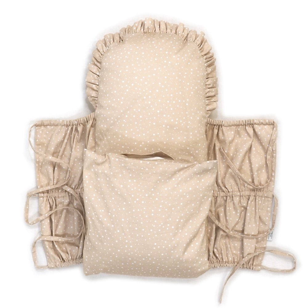 Perinka SOFTELLO je vyrobená z kvalitného bavlneného saténu s našim vlastným originálnym dizajnom. Tento materiál je na dotyk v porovnaní s klasickou bavlnou oveľa príjemnejší a hebkejší, a preto zaručí vášmu bábätku príjemné teplo. Má tvar obdĺžnika, a zaoblenú stranu zdobí malý volánik. Zaväzuje sa tromi šnúrkami, pevne všitými v bočných dieloch, takže nemusíte mať obavu, že by sa vám šnúrka mohla vyvliecť. Vnútornú výplň je možné vybrať, čím značne zjednodušuje jej údržbu a predlžuje jej životnosť.