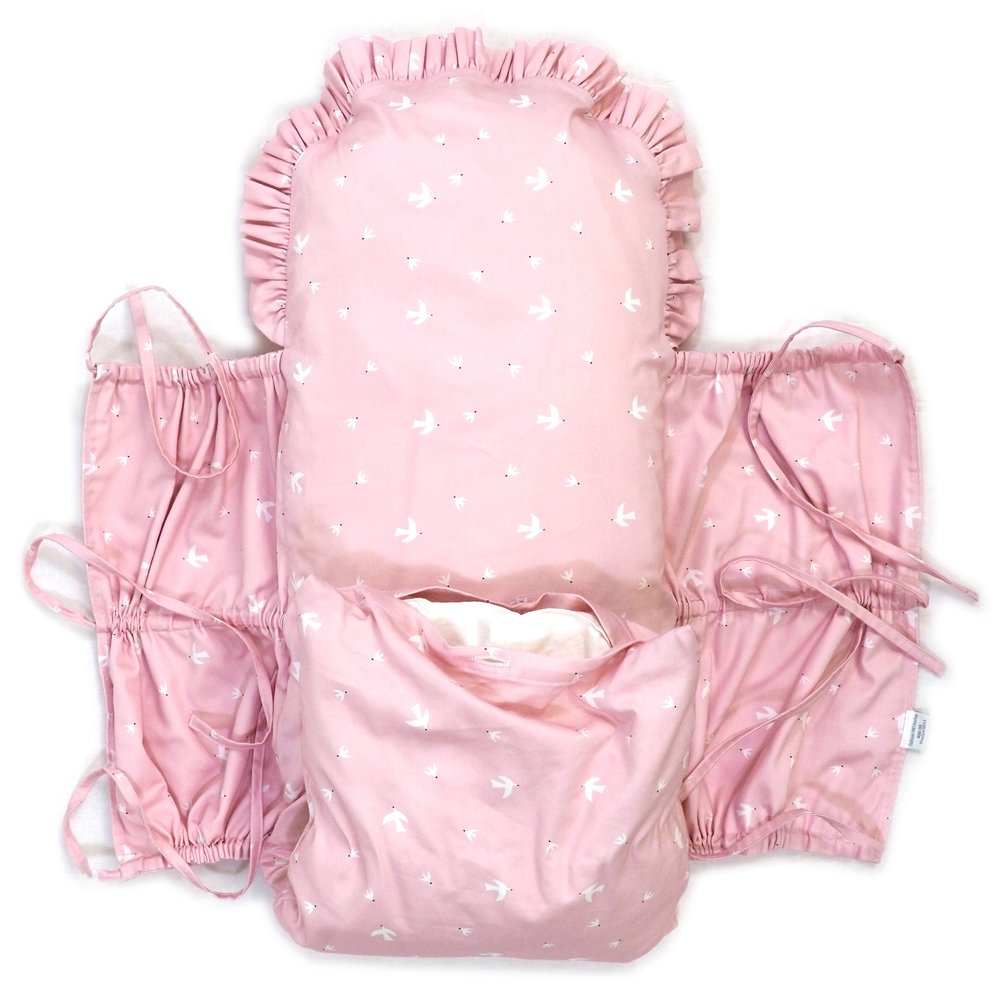 Perinka SOFTELLO je vyrobená z kvalitného bavlneného saténu s našim vlastným originálnym dizajnom. Tento materiál je na dotyk v porovnaní s klasickou bavlnou oveľa príjemnejší a hebkejší, a preto zaručí vášmu bábätku príjemné teplo. Má tvar obdĺžnika, a zaoblenú stranu zdobí malý volánik. Zaväzuje sa tromi šnúrkami, pevne všitými v bočných dieloch, takže nemusíte mať obavu, že by sa vám šnúrka mohla vyvliecť. Vnútornú výplň je možné vybrať, čím značne zjednodušuje jej údržbu a predlžuje jej životnosť.