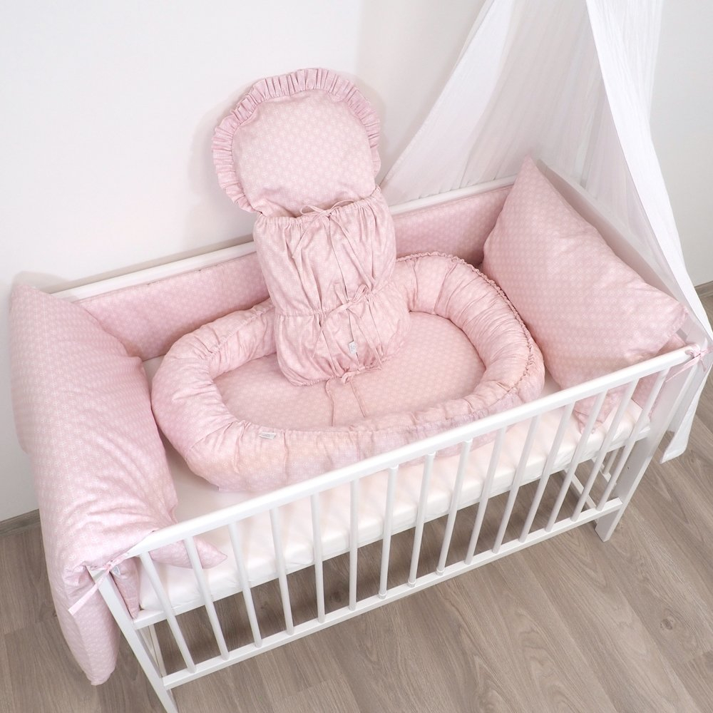 Perinka SOFTELLO je vyrobená z kvalitného bavlneného saténu s našim vlastným originálnym dizajnom. Tento materiál je na dotyk v porovnaní s klasickou bavlnou oveľa príjemnejší a hebkejší, a preto zaručí vášmu bábätku príjemné teplo. Má tvar obdĺžnika, a zaoblenú stranu zdobí malý volánik. Zaväzuje sa tromi šnúrkami, pevne všitými v bočných dieloch, takže nemusíte mať obavu, že by sa vám šnúrka mohla vyvliecť. Vnútornú výplň je možné vybrať, čím značne zjednodušuje jej údržbu a predlžuje jej životnosť.