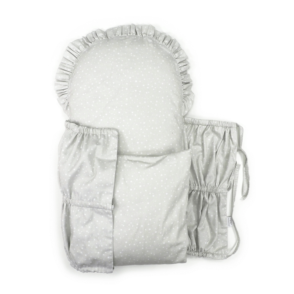 Perinka SOFTELLO je vyrobená z kvalitného bavlneného saténu s našim vlastným originálnym dizajnom. Tento materiál je na dotyk v porovnaní s klasickou bavlnou oveľa príjemnejší a hebkejší, a preto zaručí vášmu bábätku príjemné teplo. Má tvar obdĺžnika, a zaoblenú stranu zdobí malý volánik. Zaväzuje sa tromi šnúrkami, pevne všitými v bočných dieloch, takže nemusíte mať obavu, že by sa vám šnúrka mohla vyvliecť. Vnútornú výplň je možné vybrať, čím značne zjednodušuje jej údržbu a predlžuje jej životnosť.