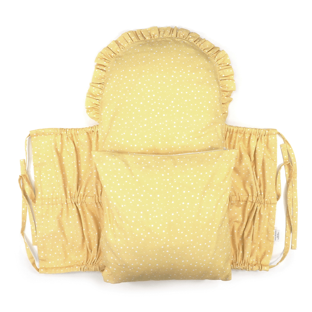 Perinka SOFTELLO je vyrobená z kvalitného bavlneného saténu s našim vlastným originálnym dizajnom. Tento materiál je na dotyk v porovnaní s klasickou bavlnou oveľa príjemnejší a hebkejší, a preto zaručí vášmu bábätku príjemné teplo. Má tvar obdĺžnika, a zaoblenú stranu zdobí malý volánik. Zaväzuje sa tromi šnúrkami, pevne všitými v bočných dieloch, takže nemusíte mať obavu, že by sa vám šnúrka mohla vyvliecť. Vnútornú výplň je možné vybrať, čím značne zjednodušuje jej údržbu a predlžuje jej životnosť.