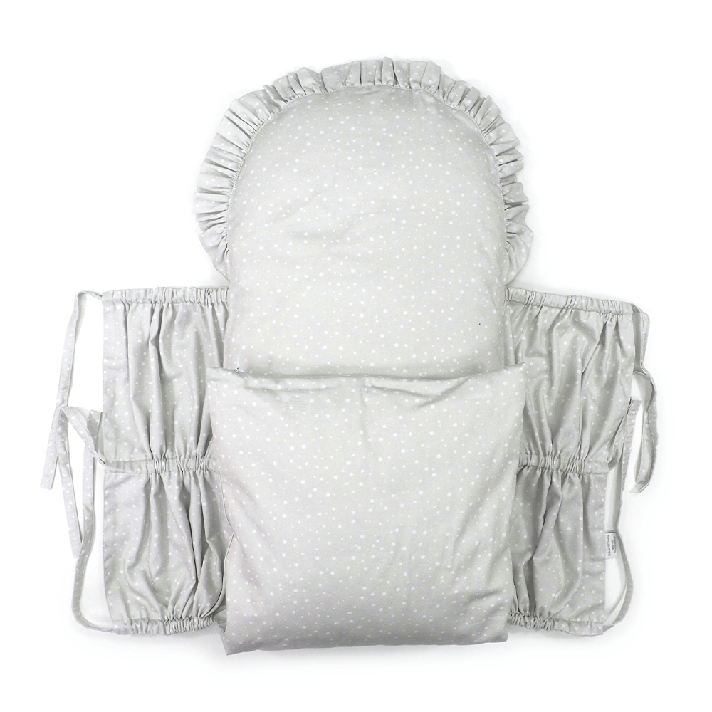 Perinka SOFTELLO je vyrobená z kvalitného bavlneného saténu s našim vlastným originálnym dizajnom. Tento materiál je na dotyk v porovnaní s klasickou bavlnou oveľa príjemnejší a hebkejší, a preto zaručí vášmu bábätku príjemné teplo. Má tvar obdĺžnika, a zaoblenú stranu zdobí malý volánik. Zaväzuje sa tromi šnúrkami, pevne všitými v bočných dieloch, takže nemusíte mať obavu, že by sa vám šnúrka mohla vyvliecť. Vnútornú výplň je možné vybrať, čím značne zjednodušuje jej údržbu a predlžuje jej životnosť.