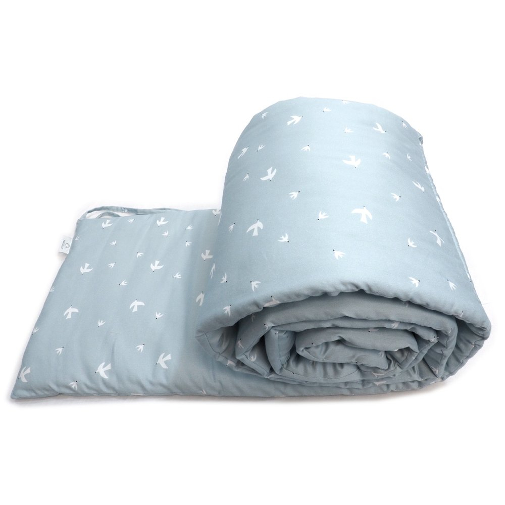 Mantinel SOFTELLO je vyrobený z kvalitného bavlneného saténu, ktorý je potlačený našim vlastným originálnym dizajnom. Tento materiál je na dotyk v porovnaní s klasickou bavlnou oveľa príjemnejší a hebkejší. Má tvar dlhého obdĺžnika, ktorý o postieľku pohodlne upevníte viacerými šnúrkami.