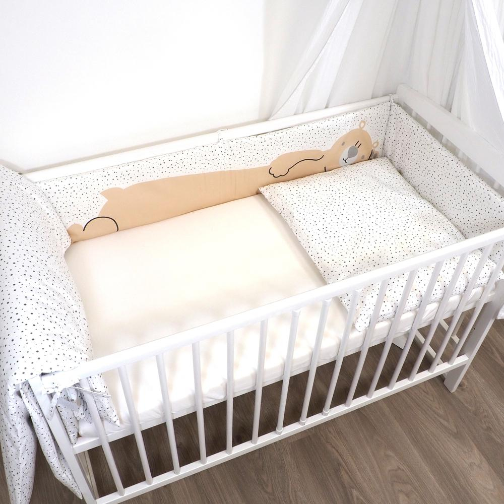 Mantinel do postieľky je určený na prekrytie troch strán postieľky. Medzi jeho najdôležitejšie poslanie patrí v prvom rade jeho bezpečnosť. Jeho mäkká výplň dokáže stlmiť každý náraz a účinne tak ochrániť vaše dieťatko pred prípadným poranením. Okrem toho mantinel chráni pred prievanom, ktorý môže ohrozovať zdravie dieťatka. Popri svojej dôležitej ochrannej funkcii plní mantinel aj funckiu estetickú.