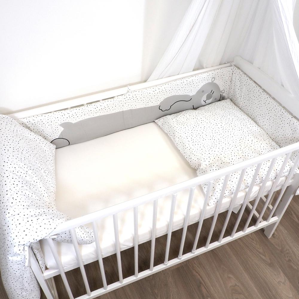 K veľkému mantinelu si môžete v rovnakom dizajne dokúpiť aj malý mantinel v rozmere 15 x 120 cm, ktorý je určený na čiastočné prekrytie zvyšnej štvrtej strany vašej postieľky.