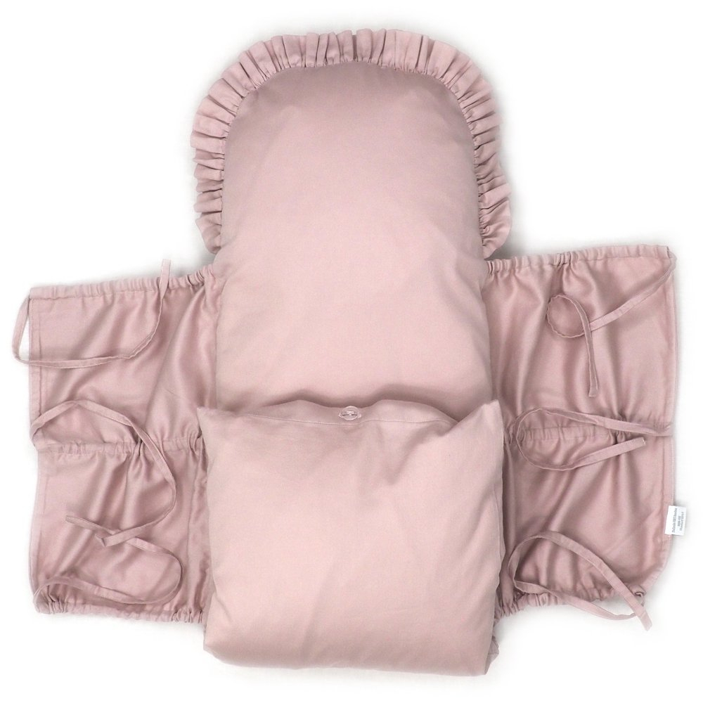 Perinka SOFTELLO je vyrobená z kvalitného bavlneného saténu s našim vlastným originálnym dizajnom. Tento materiál je na dotyk v porovnaní s klasickou bavlnou oveľa príjemnejší a hebkejší, a preto zaručí vášmu bábätku príjemné teplo. Má tvar obdĺžnika, a zaoblenú stranu zdobí malý volánik. Zaväzuje sa tromi šnúrkami, pevne všitými v bočných dieloch, takže nemusíte mať obavu, že by sa vám šnúrka mohla vyvliecť. Vnútornú výplň je možné vybrať, čím značne zjednodušuje jej údržbu a predlžuje jej životnosť.