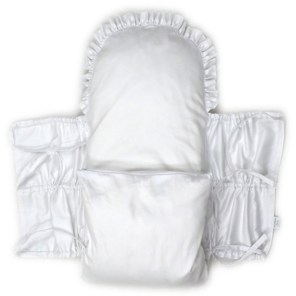 Perinka SOFTELLO je vyrobená z kvalitného bavlneného saténu s našim vlastným originálnym dizajnom. Tento materiál je na dotyk v porovnaní s klasickou bavlnou oveľa príjemnejší a hebkejší, a preto zaručí vášmu bábätku príjemné teplo. Má tvar obdĺžnika, a zaoblenú stranu zdobí malý volánik. Zaväzuje sa tromi šnúrkami, pevne všitými v bočných dieloch, takže nemusíte mať obavu, že by sa vám šnúrka mohla vyvliecť. Vnútornú výplň je možné vybrať, čím značne zjednodušuje jej údržbu a predlžuje jej životnosť.