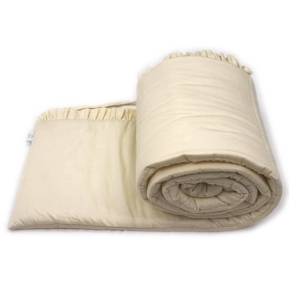Mantinel SOFTELLO vanilkovej farby je vyrobený z kvalitného bavlneného saténu. Tento materiál je na dotyk v porovnaní s klasickou bavlnou oveľa príjemnejší a hebkejší. Má tvar dlhého obdĺžnika s rozmerom 30x240cm, ktorý o postieľku pohodlne upevníte viacerými šnúrkami.