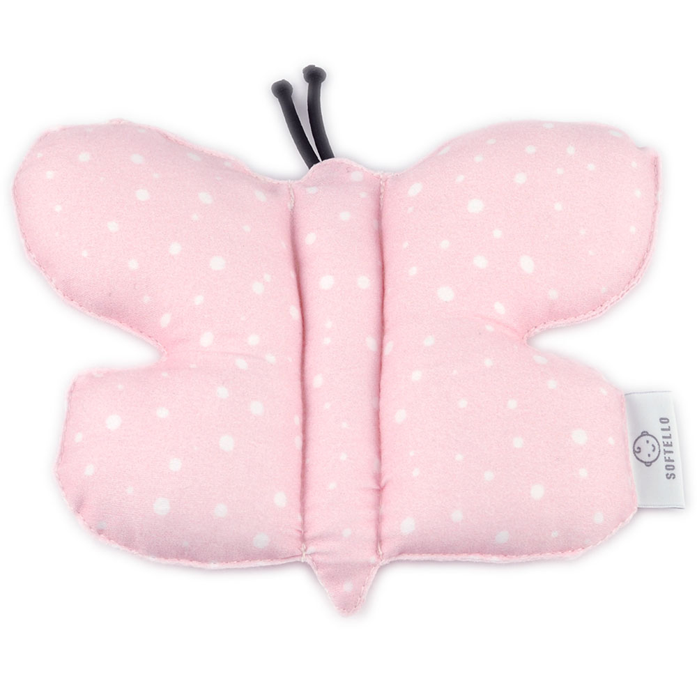 Látková hrkálka motýlik SOFTELLO v obľúbenom bodkovanom vzore, je milým darčekom aj pre to najmenšie dieťatko. Motýlik v sebe ukrýva drobnú hrkálku, ktorá vydáva jemný zvuk, ktorý je ideálny aj pre bábätko. Motýlik je ušitý z certifikovaného bavlneného saténu. Je preto veľmi príjemný na dotyk a vhodný na kontakt aj s tou najcitlivejšou detskou pokožkou. Vďaka svojej mäkkosti je pre bábätko bezpečnejší ako klasické plastové hrkálky.
