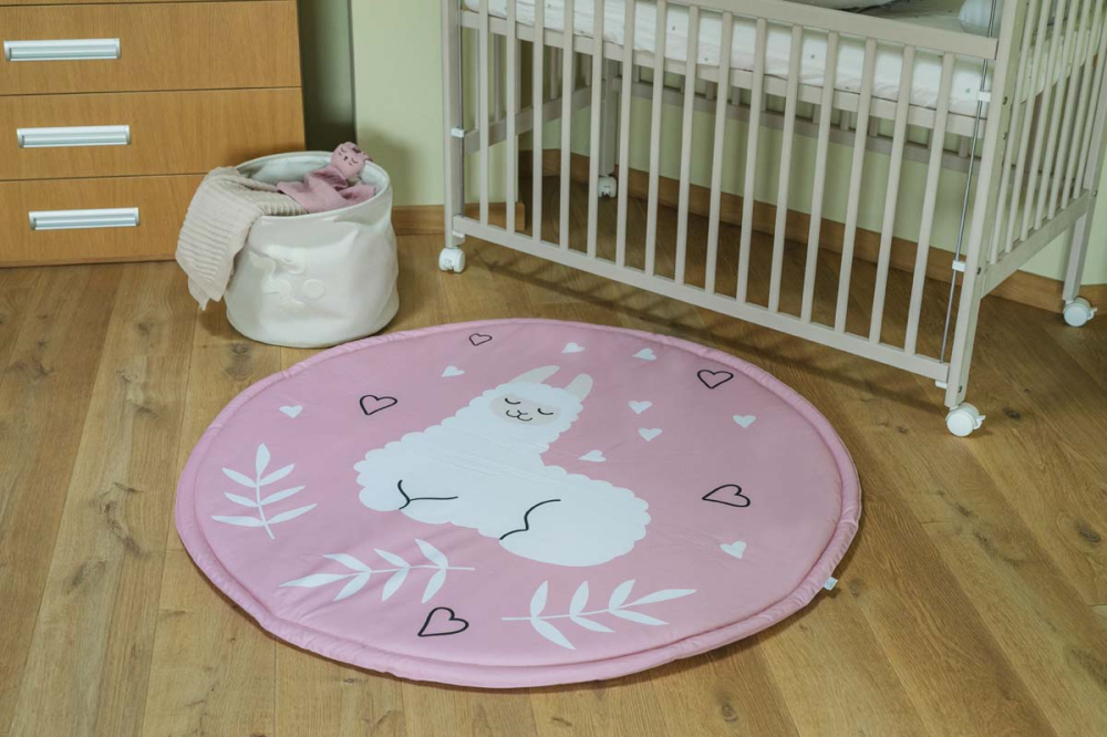 Podložka na hraní SOFTELLO v designu lama růžová s naším vlastním originálním designem je krásným a praktickým doplňkem každého dětského pokojíčku. Sloužit může také jako kobereček k dětské postýlce, nebo i jako podložka na focení. Opačná strana je jednobarevná bez vzoru.