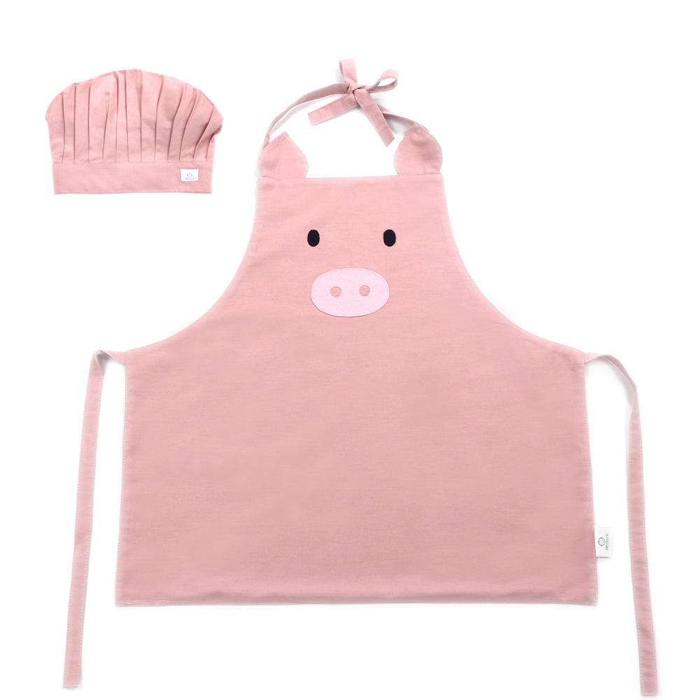 Detský kuchársky set v dizajne prasiatko pozostáva zo zástery a kuchárskej čapice. Veľkosť sa dá upraviť podľa potreby šnúrkami. Dostupné sú viaceré varianty.