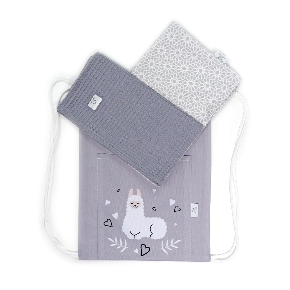 Detský vak na chrbát - lama sivá
