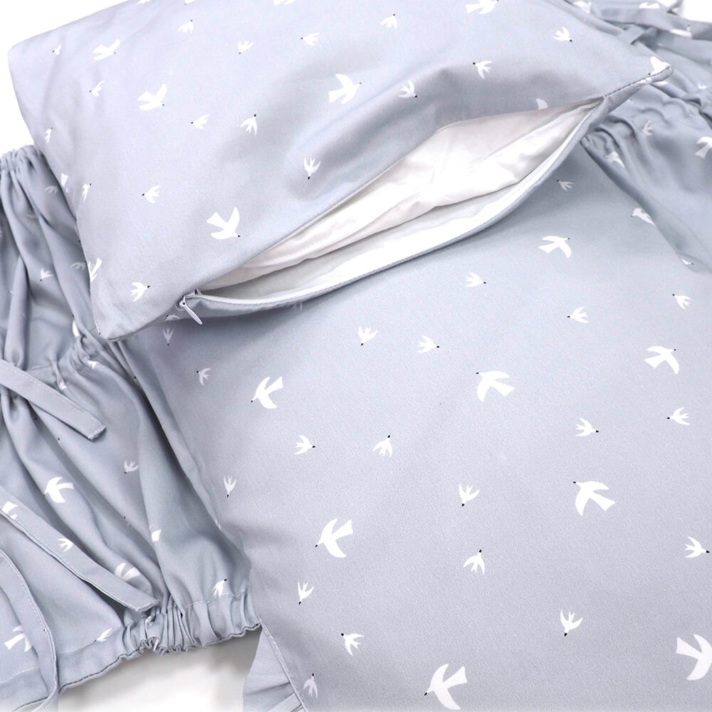 Perinka SOFTELLO je vyrobená z kvalitného bavlneného saténu s našim vlastným originálnym dizajnom. Tento materiál je na dotyk v porovnaní s klasickou bavlnou oveľa príjemnejší a hebkejší, a preto zaručí vášmu bábätku príjemné teplo. Má tvar obdĺžnika, a zaoblenú stranu zdobí malý volánik. Zaväzuje sa tromi šnúrkami, pevne všitými v bočných dieloch, takže nemusíte mať obavu, že by sa vám šnúrka mohla vyvliecť. Vnútornú výplň je možné vybrať, čím značne zjednodušuje jej údržbu a predlžuje jej životnosť.