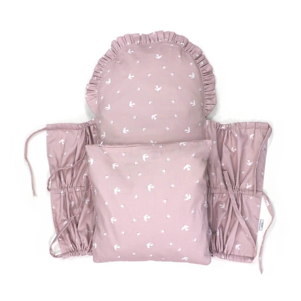 Perinka SOFTELLO je vyrobená z kvalitného bavlneného saténu s našim vlastným originálnym dizajnom. Tento materiál je na dotyk v porovnaní s klasickou bavlnou oveľa príjemnejší a hebkejší, a preto zaručí vášmu bábätku príjemné teplo. Má tvar obdĺžnika, a zaoblenú stranu zdobí malý volánik. Zaväzuje sa tromi šnúrkami, pevne všitými v bočných dieloch, takže nemusíte mať obavu, že by sa vám šnúrka mohla vyvliecť. Vnútornú výplň je možné vybrať, čím značne zjednodušuje jej údržbu a predlžuje jej životnosť.