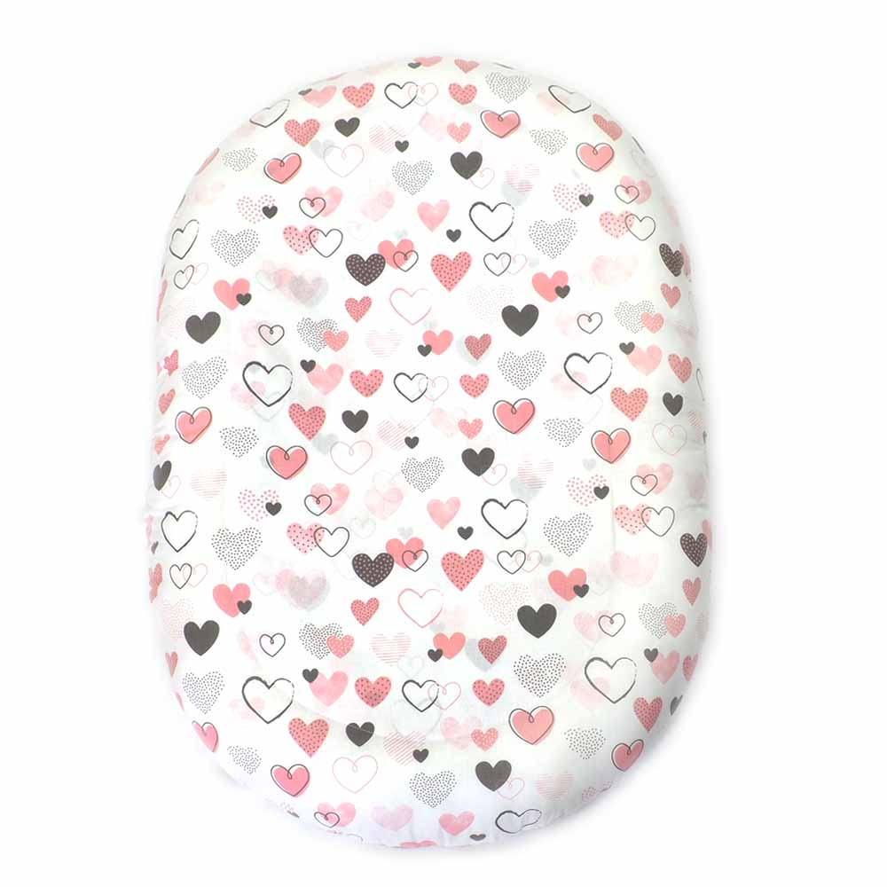 Hniezdočko v dizajne ružové srdiečka je praktickým pomocníkom pre mamičky. Toto hniezdočko nie je rastúce. Veľkosť však môžete regulovať podľa potreby vďaka sťahovacím šnúrkam. Ložnú plochu tvorí vyberateľný matrac hrúbky 1,5-2cm. Dodáva sa spolu s malým vankúšikom s rozmerom 38 x 24 cm.