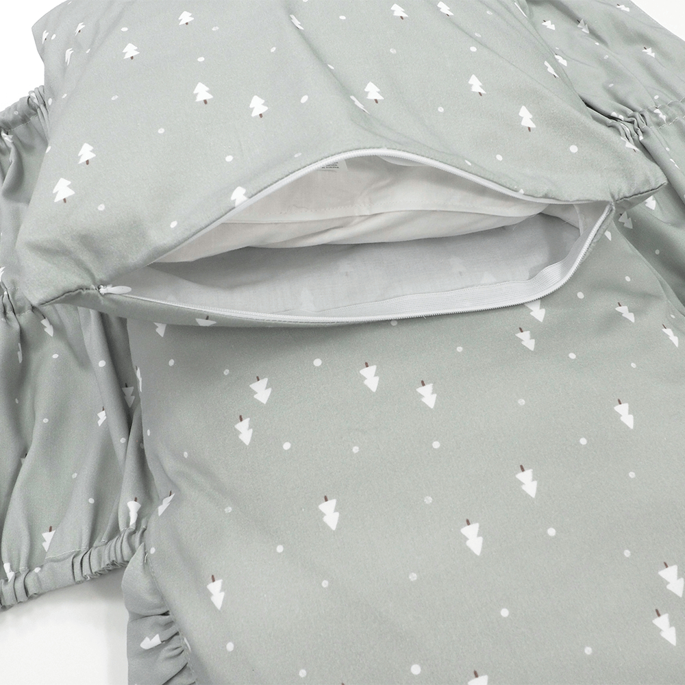 Náhradný doplnkový návlek na perinku SOFTELLO v dizajne šalviový zimný les. V našej ponuke nájdete perinky v letnej, zimnej a páperovej verzii. Návlek na perinku je navrhnutý tak, aby rozmermi sedel na každú verziu perinky SOFTELLO, či už na letnú, zimnú, alebo páperovú. V spodnej časti návleku sa nachádza skrytý zips, cez ktorý jednoducho vložíte vnútornú výplň. Všetky návleky sú vyrobené z jemnučkého certifikovaného bavlneného saténu.