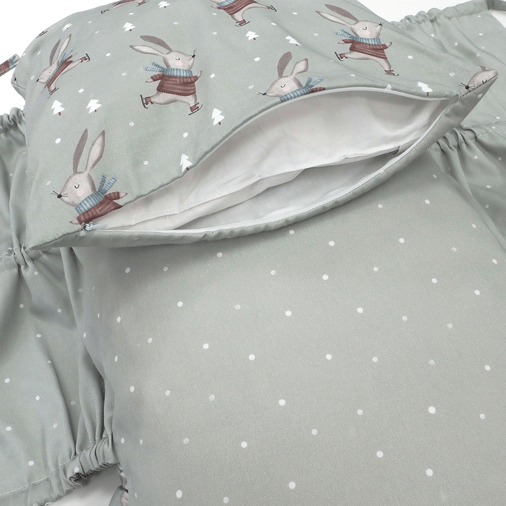 Náhradný doplnkový návlek na perinku SOFTELLO v dizajne šalviový zimný zajko+bodka. V našej ponuke nájdete perinky v letnej, zimnej a páperovej verzii. Návlek na perinku je navrhnutý tak, aby rozmermi sedel na každú verziu perinky SOFTELLO, či už na letnú, zimnú, alebo páperovú. V spodnej časti návleku sa nachádza skrytý zips, cez ktorý jednoducho vložíte vnútornú výplň z vašej perinky. Všetky návleky sú vyrobené z jemnučkého bavlneného saténu.