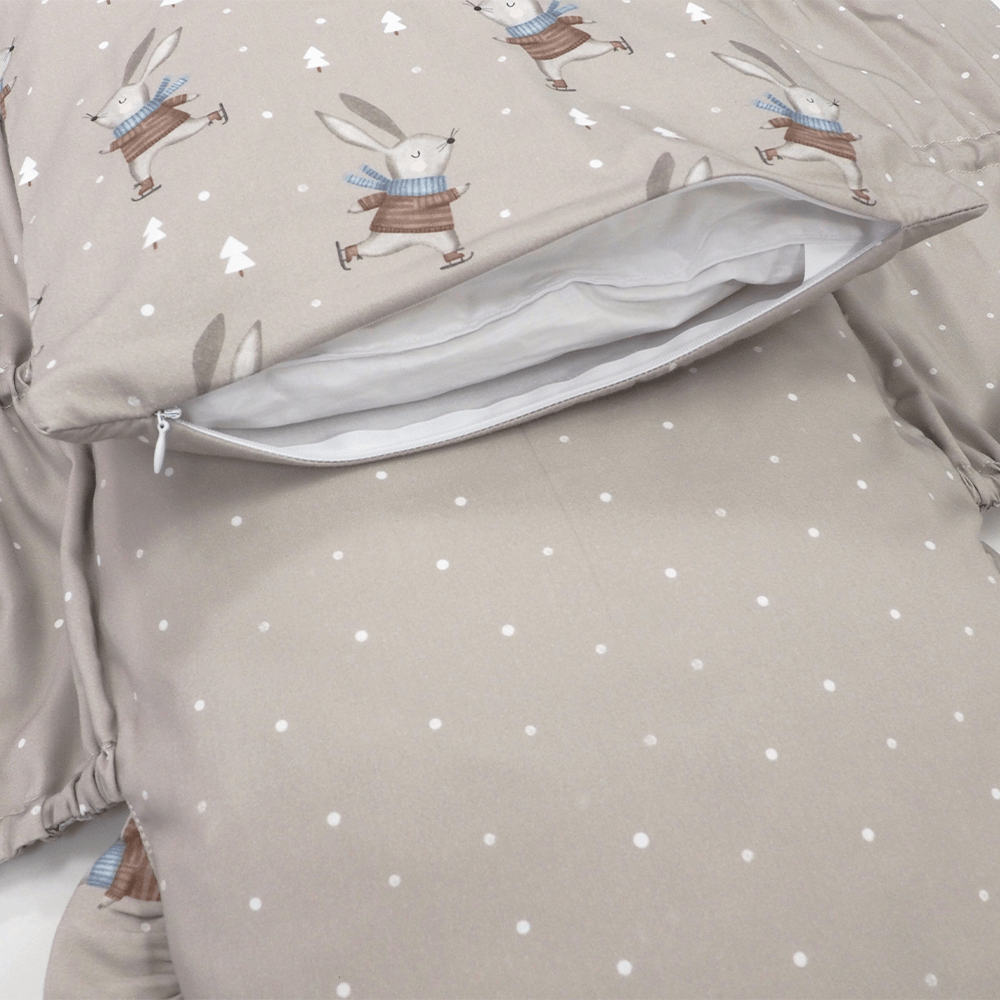 Náhradný doplnkový návlek na perinku SOFTELLO v dizajne sivohnedý zimný zajko+bodka. V našej ponuke nájdete perinky v letnej, zimnej a páperovej verzii. Návlek na perinku je navrhnutý tak, aby rozmermi sedel na každú verziu perinky SOFTELLO, či už na letnú, zimnú, alebo páperovú. V spodnej časti návleku sa nachádza skrytý zips, cez ktorý jednoducho vložíte vnútornú výplň z vašej perinky. Všetky návleky sú vyrobené z jemnučkého bavlneného saténu.
