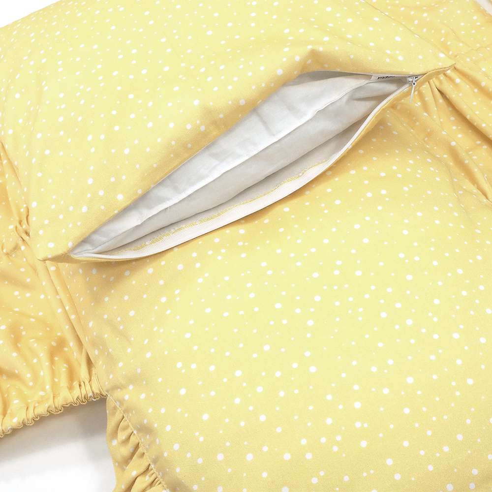Náhradný doplnkový návlek na perinku SOFTELLO v dizajne žltá bodka. V našej ponuke nájdete perinky v letnej, zimnej a páperovej verzii. Návlek na perinku je navrhnutý tak, aby rozmermi sedel na každú verziu perinky SOFTELLO, či už na letnú, zimnú, alebo páperovú. V spodnej časti návleku sa nachádza skrytý zips, cez ktorý jednoducho vložíte vnútornú výplň z vašej perinky. Všetky návleky sú vyrobené z jemnučkého bavlneného saténu.